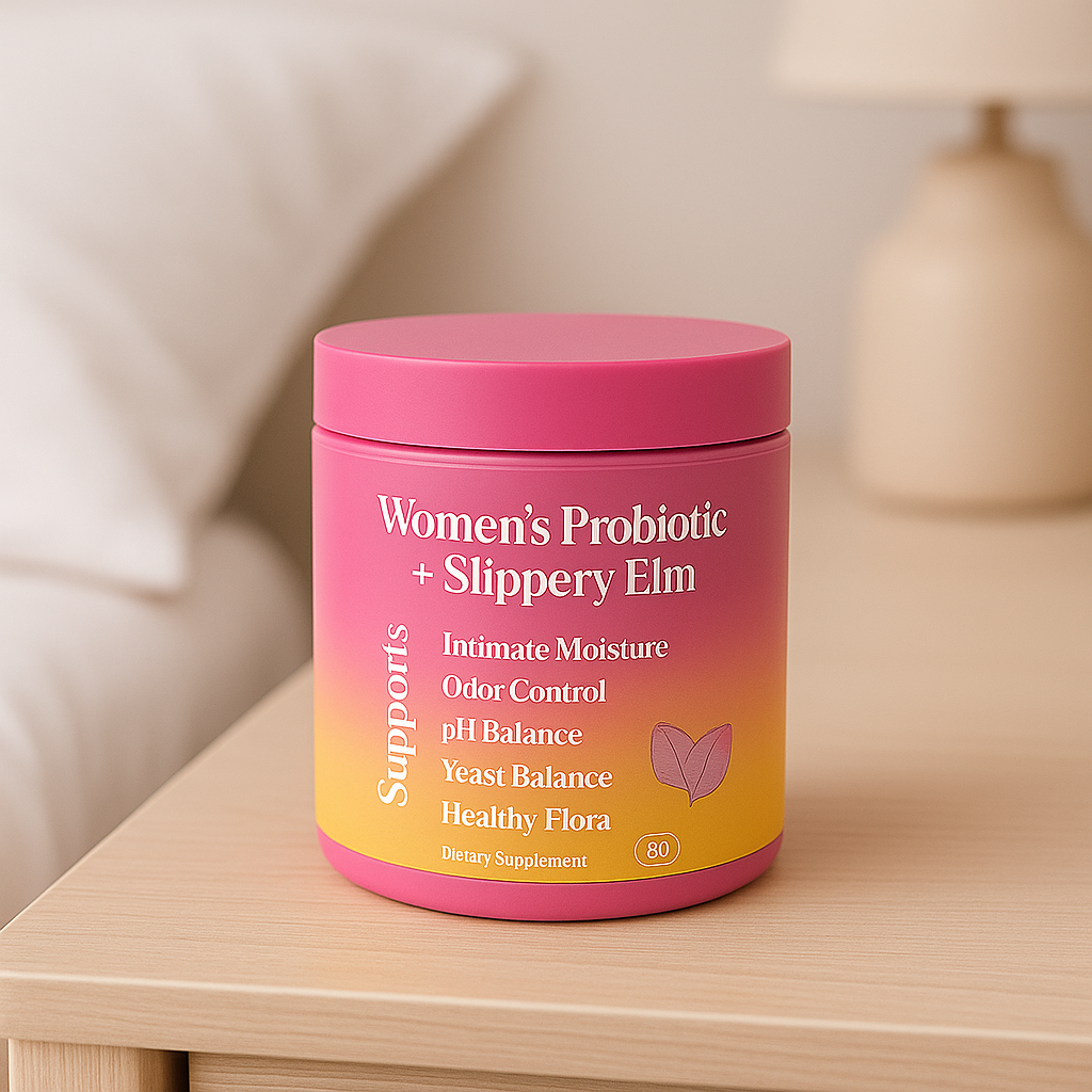 • Slippery Elm – Helps increase natural moisture and soothe internal dryness for greater comfort and balance.